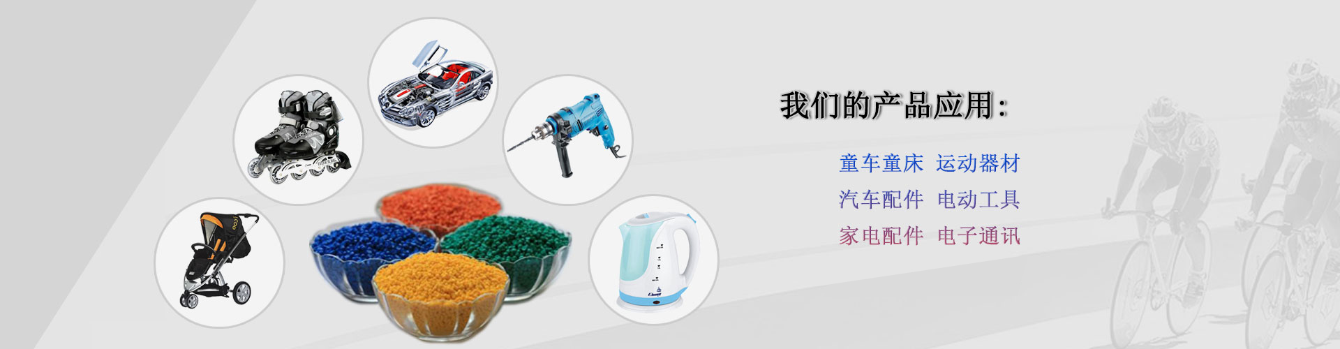 應(yīng)用范圍:運(yùn)動(dòng)器材、家電配件、電子連接器、汽車(chē)配件、電動(dòng)工具、醫(yī)療器材、童車(chē)童床、照相器材等。